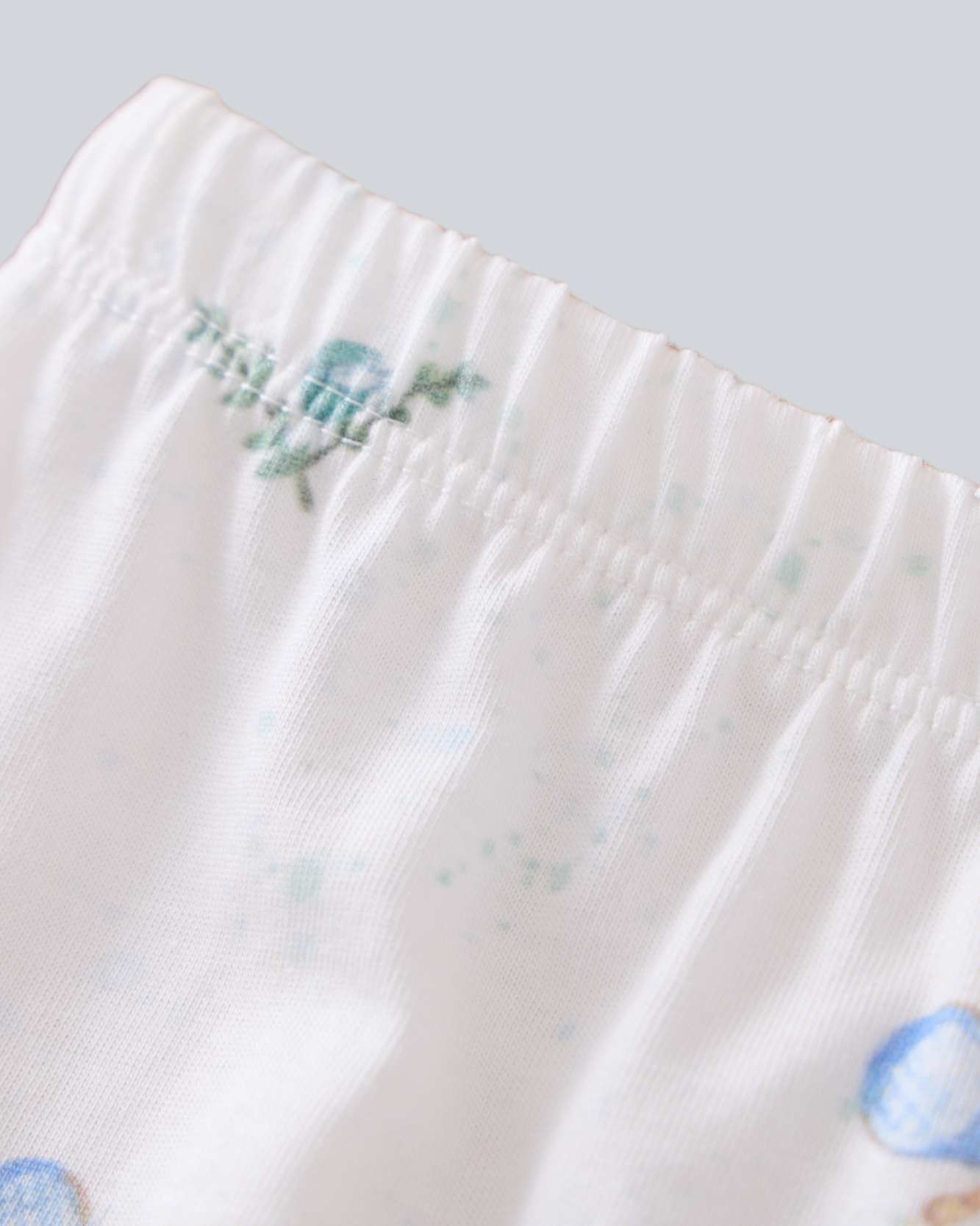 Made with the organic cotton fabric in our seasonal creative print, making bedtime a breeze all summer long. Cuddle in with this snug-fitting two-piece set featuring a short-sleeved shirt and shorts that are sure to keep your little one cool on even the warmest of summer nights.