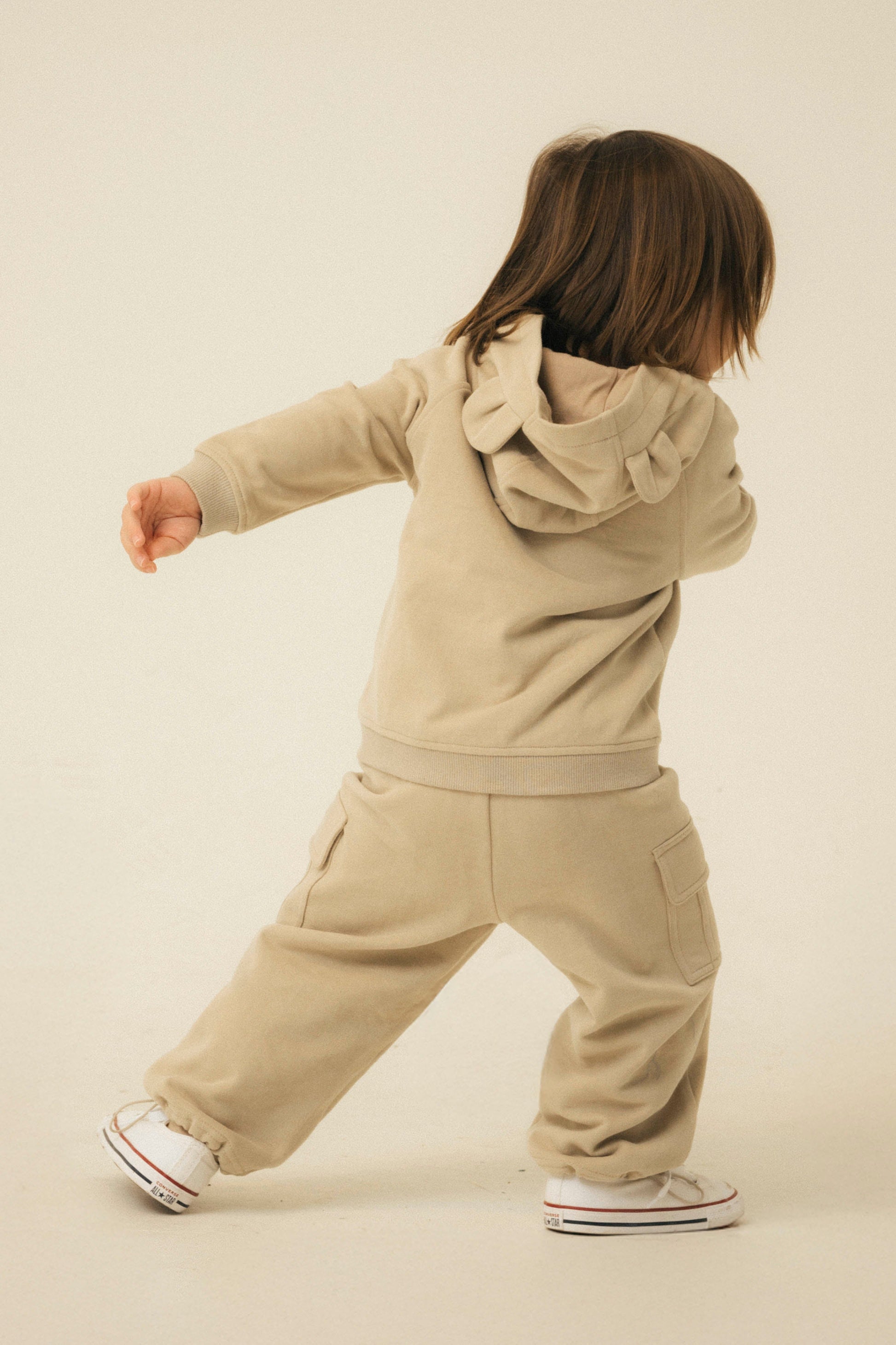 This adorable hooded jacket features cute bear ears on the hood, along with bear embroidery on the left side. The relaxed fit makes it warm and perfect for layering during colder days. Made from 100% Organic Cotton.