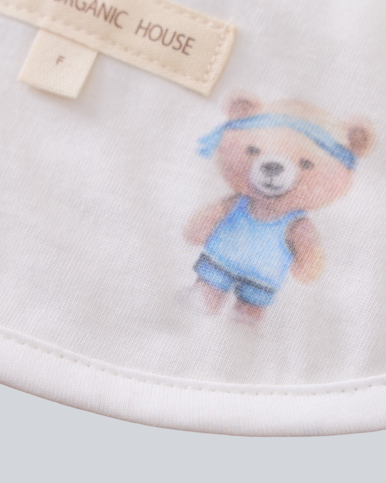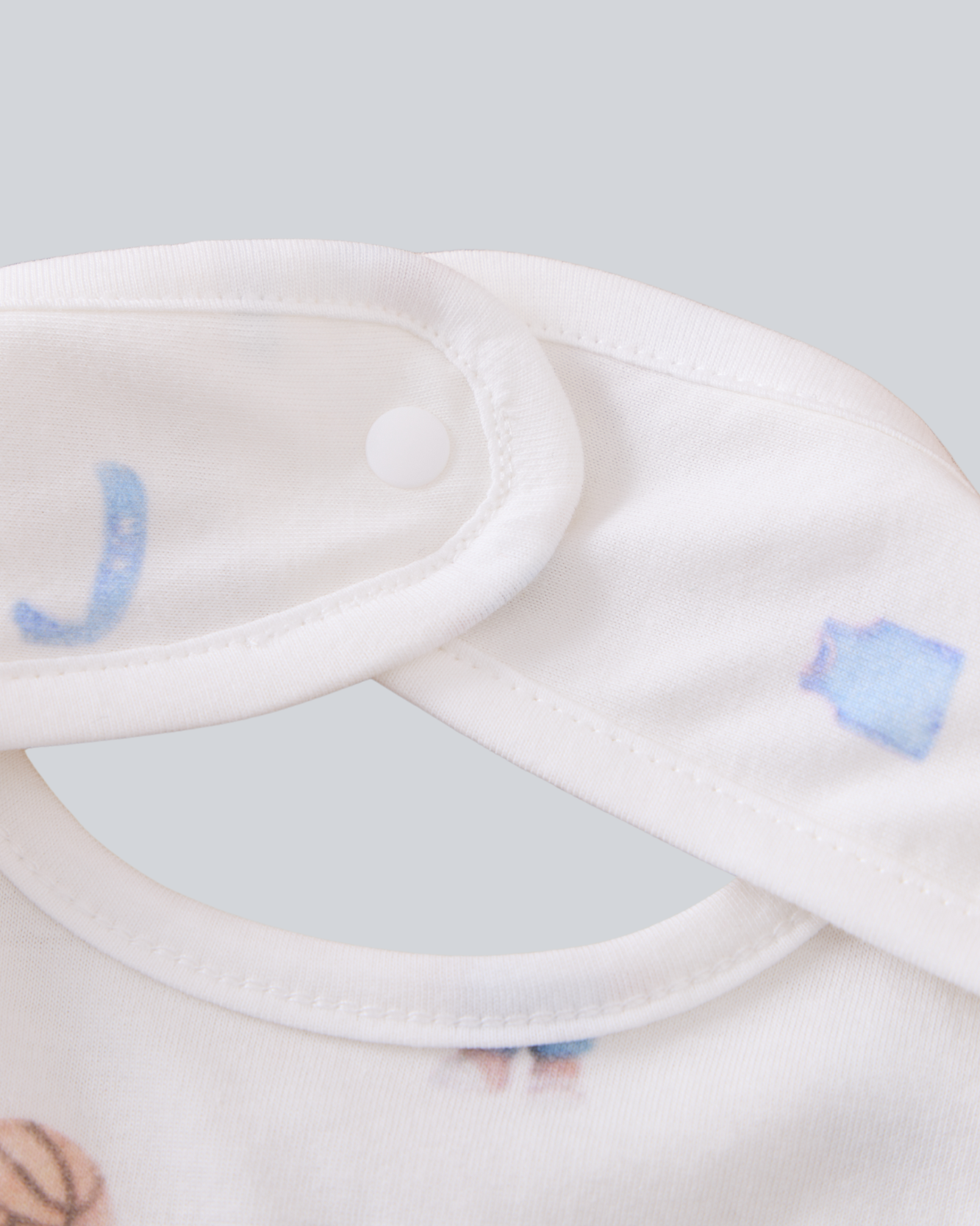 Catch mealtime messes with this sweet allover print. Made from organic cotton for softness and comfort.