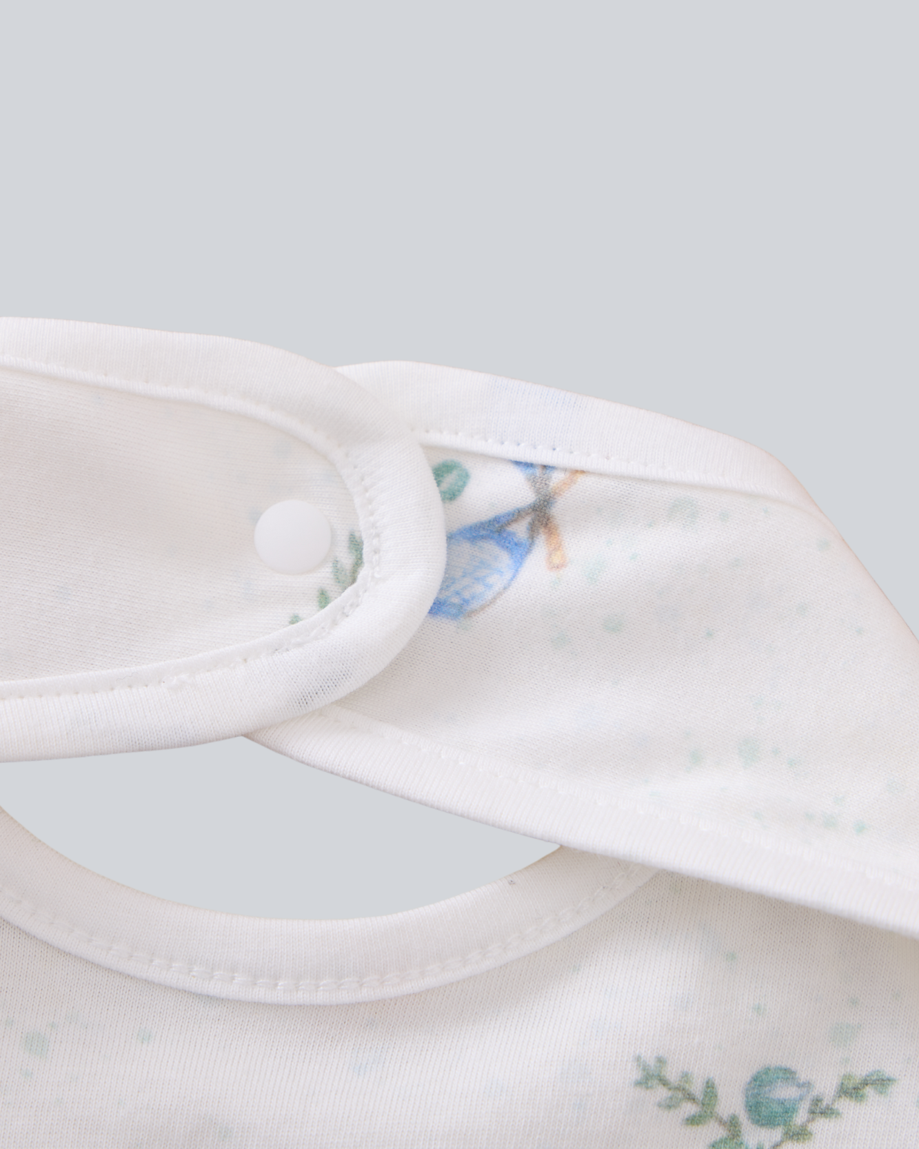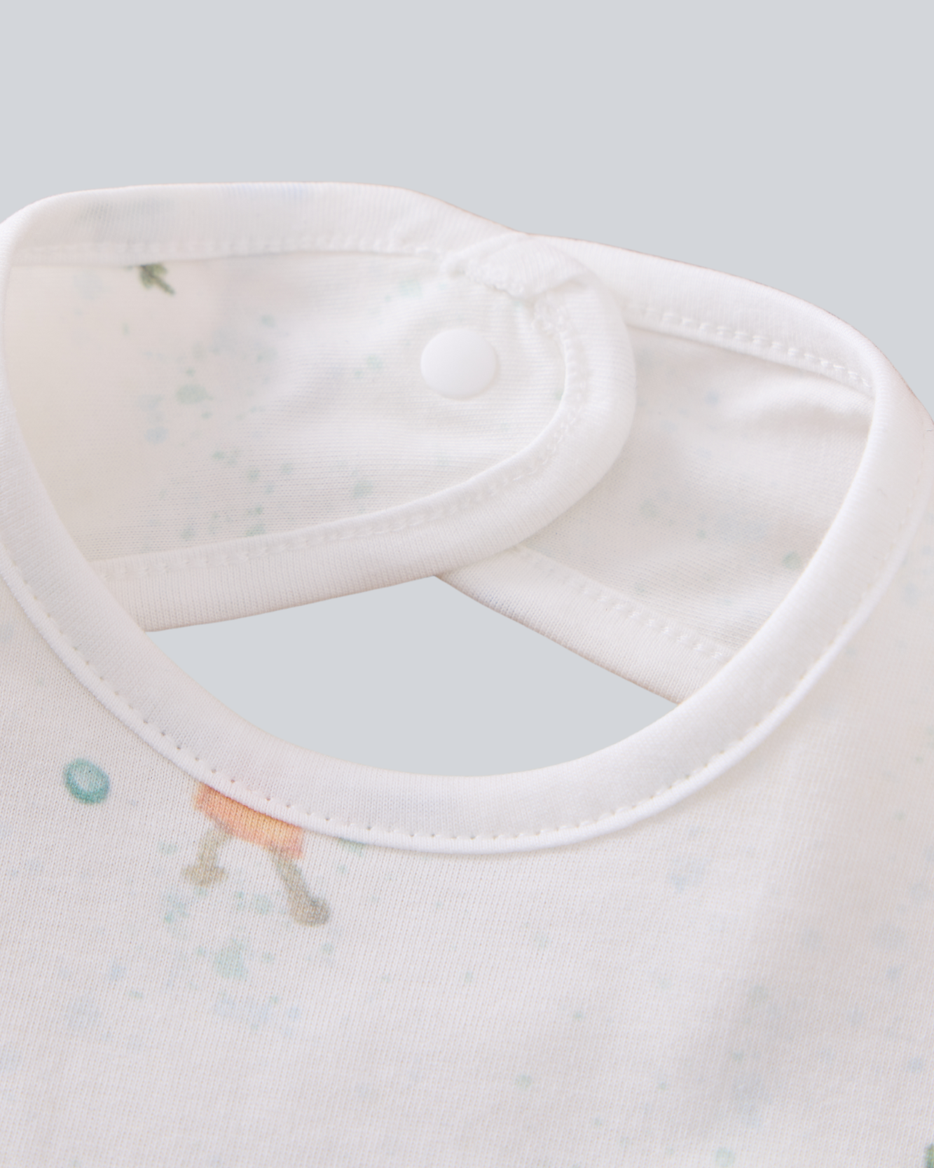 Catch mealtime messes with this sweet allover print. Made from organic cotton for softness and comfort.